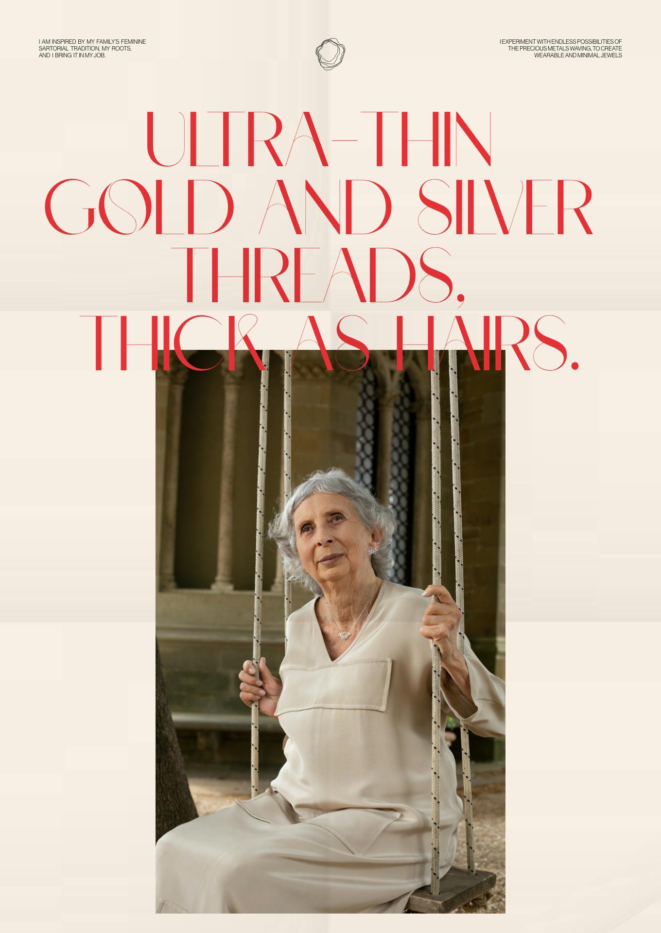 Coming from a family with a strong feminine tailoring tradition, she wanted to bring this passionate root into her jewellery world, finding new ways of working with textiles.